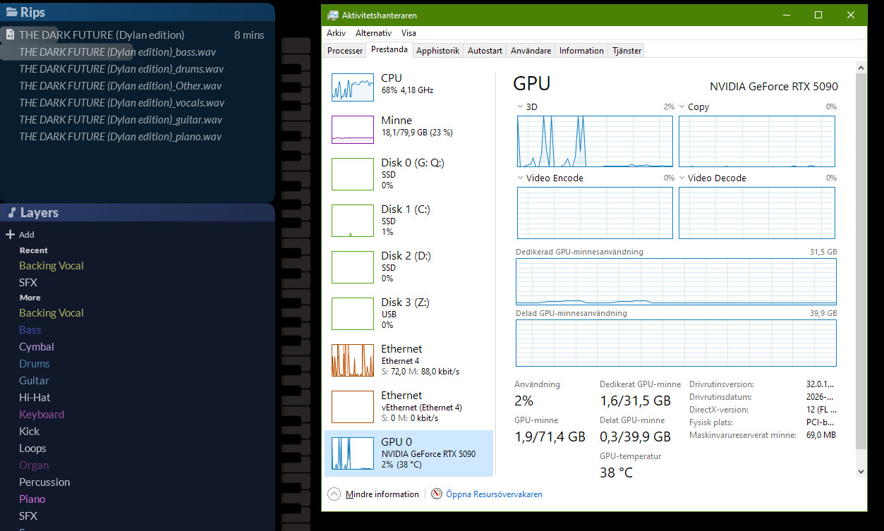 @kallamamran According to this information, GPU hardware acceleration is enabled. If you look in Task Manager, you should see the GPU being used during the instrument separation stage (before Ripper opens). Do you not see any usage at all when doing this?